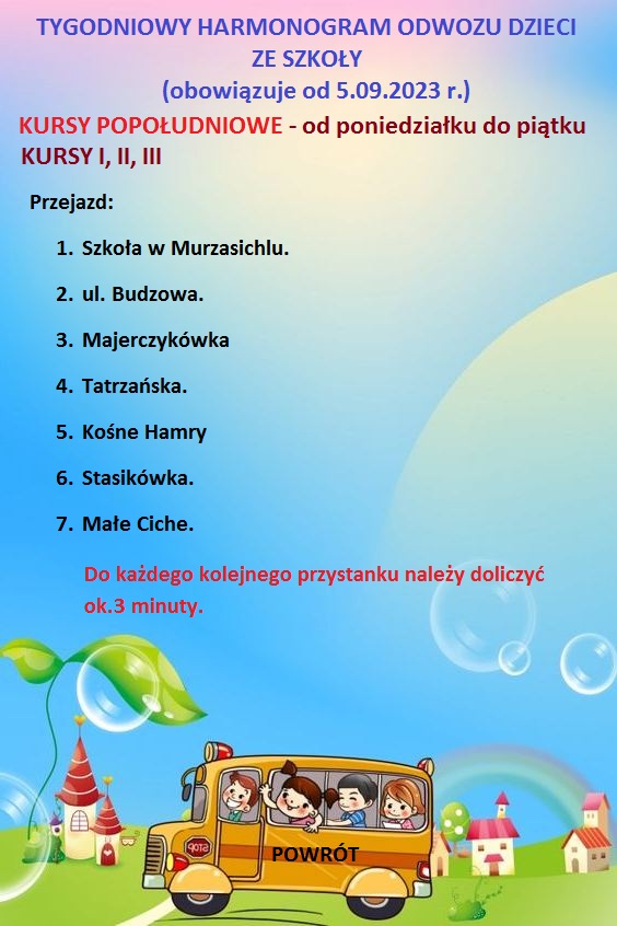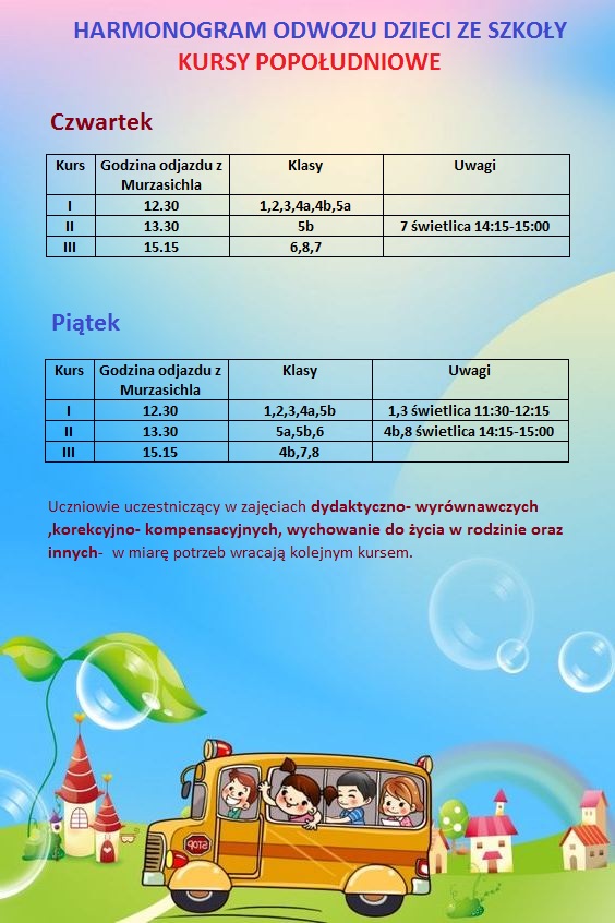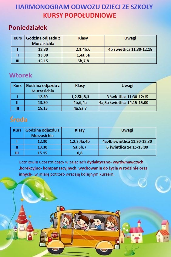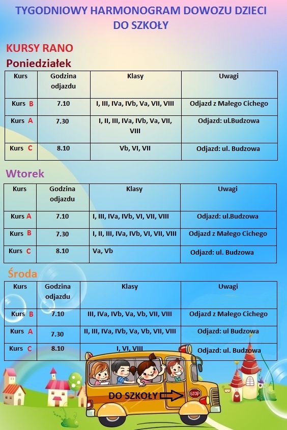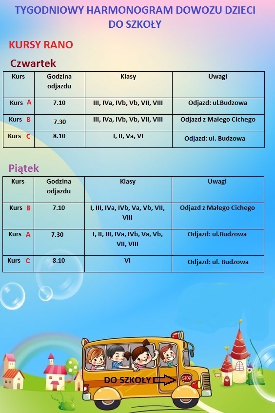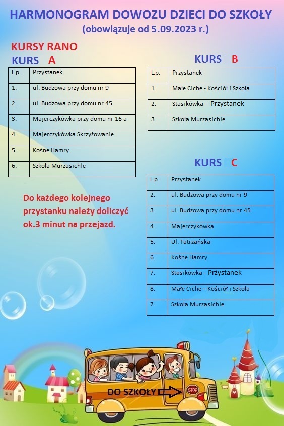 ZMIANY - Aktualny harmonogram dowozu i odwozu dzieci