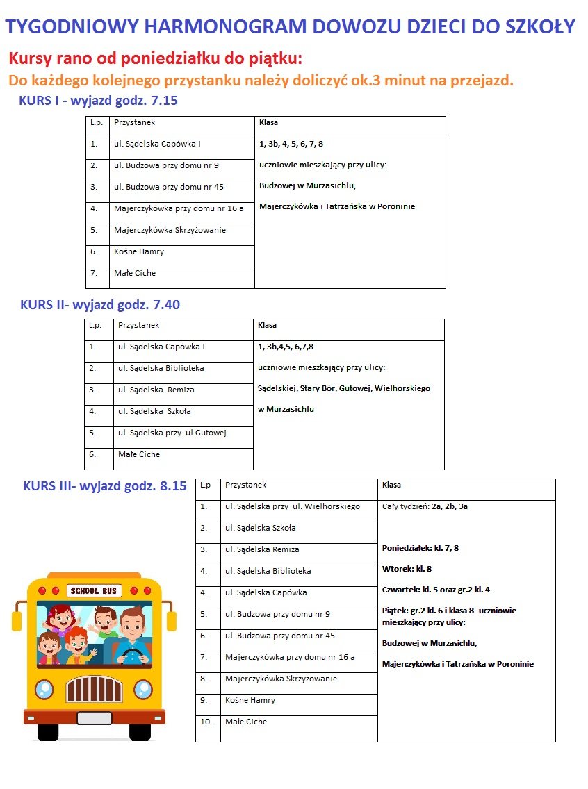 Harmonogram dowozu uczniów (od 03.10.2022)