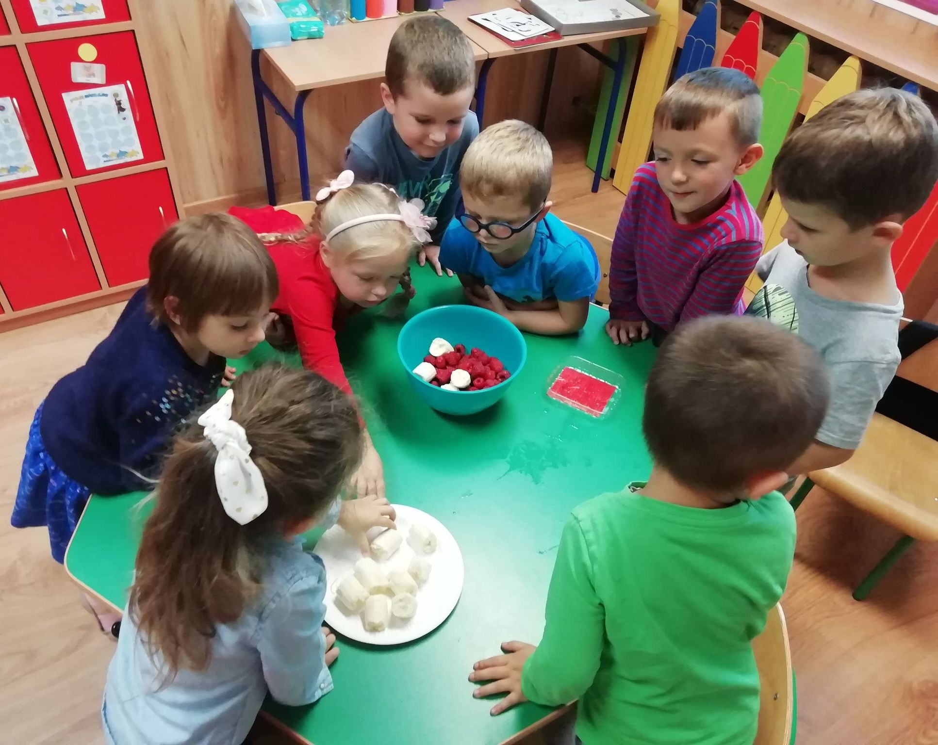 Przedszkolaki już od najmłodszych lat wiedzą, że owoce to samo zdrowie! Samodzielnie wykonały zdrowe szaszłyki owocowe oraz pyszny koktajl. Na zajęciach poznały wiele ciekawych, owocowych smaków, zapachów oraz witaminek.