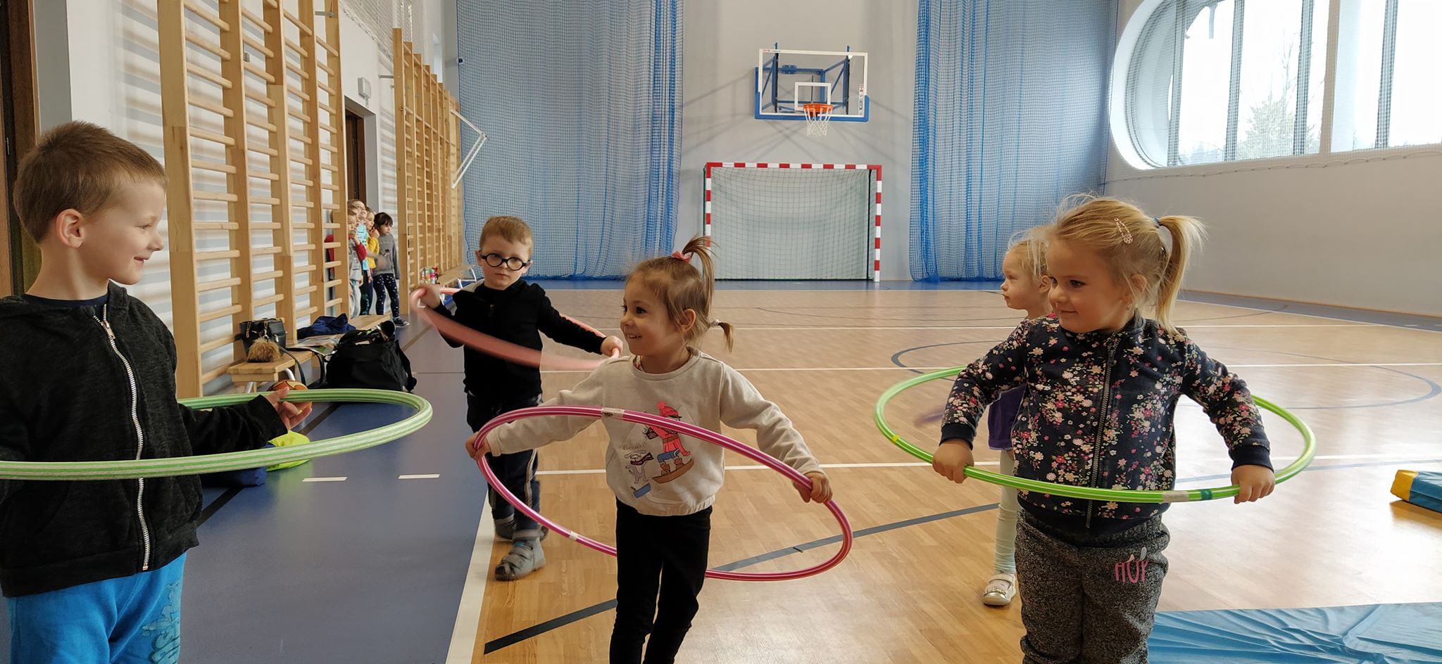 25 lutego 2020 r. na sali gimnastycznej odbyły się zawody sportowe naszych przedszkolaków. Dzieci brały udział w różnych konkurencjach sportowych, m.in. w: torze przeszkód, skakaniu na piłkach i skakankach. W ruch poszły też koła hula- hop. Zabawy było co niemiara a każdy uczestnik dał z siebie wszystko i w nagrodę został odznaczony "złotym medalem"