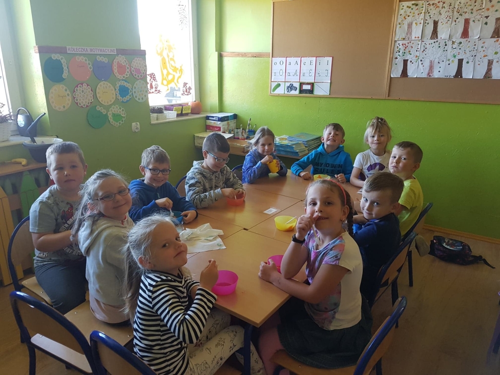 W zdrowym ciele, zdrowy duch! Przedszkolaki uwielbiają przebywać na świeżym powietrzu . Pamiętamy też o zdrowym odżywianiu, dlatego dzieci uczyły się przygotowywać sałatkę. Była pyszna!
