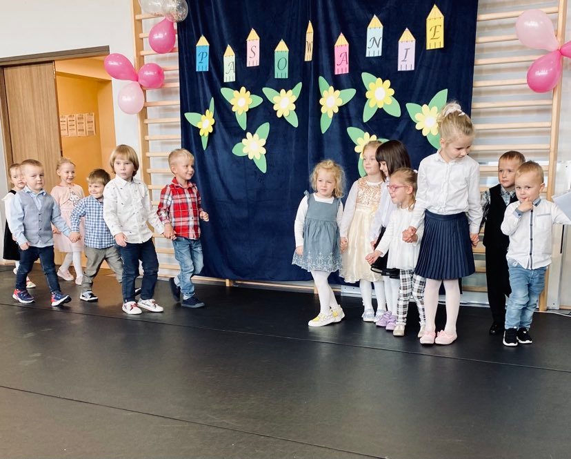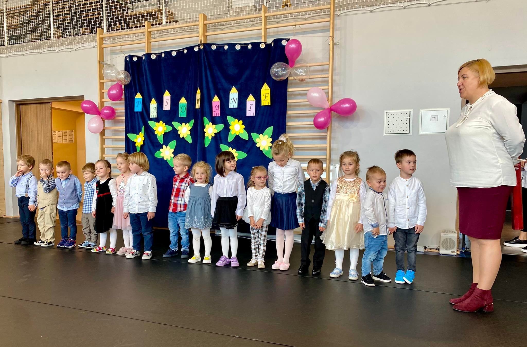 Pasowania przedszkolaków dokonała p. dyrektor Monika Tomaszewska. Dzieci zaprezentowały program artystyczny przygotowany przez panie: Beatę Łukaszczyk i Teresę Staszel.