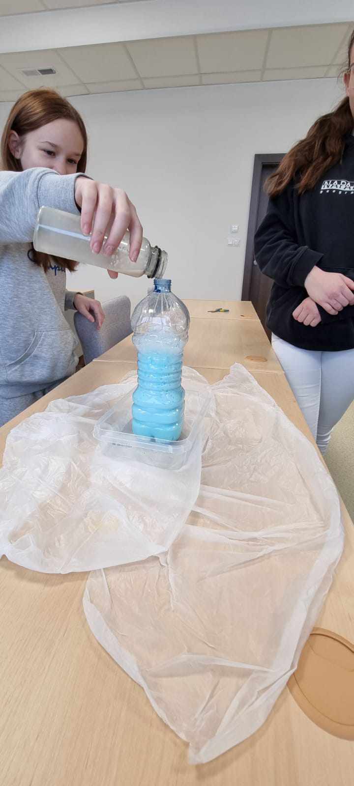 Kierując się popularną metodą CLIL (Content and Language Integrated Skills), która łączy użycie języka obcego podczas nauki pozostałych przedmiotów szkolnych, uczniowie uczyli się słownictwa związanego z danym eksperymentem, a następnie osobiście przeprowadzili doświadczenie. Ostatnim punktem lekcji było omówienie reakcji zachodzącej w butelce.