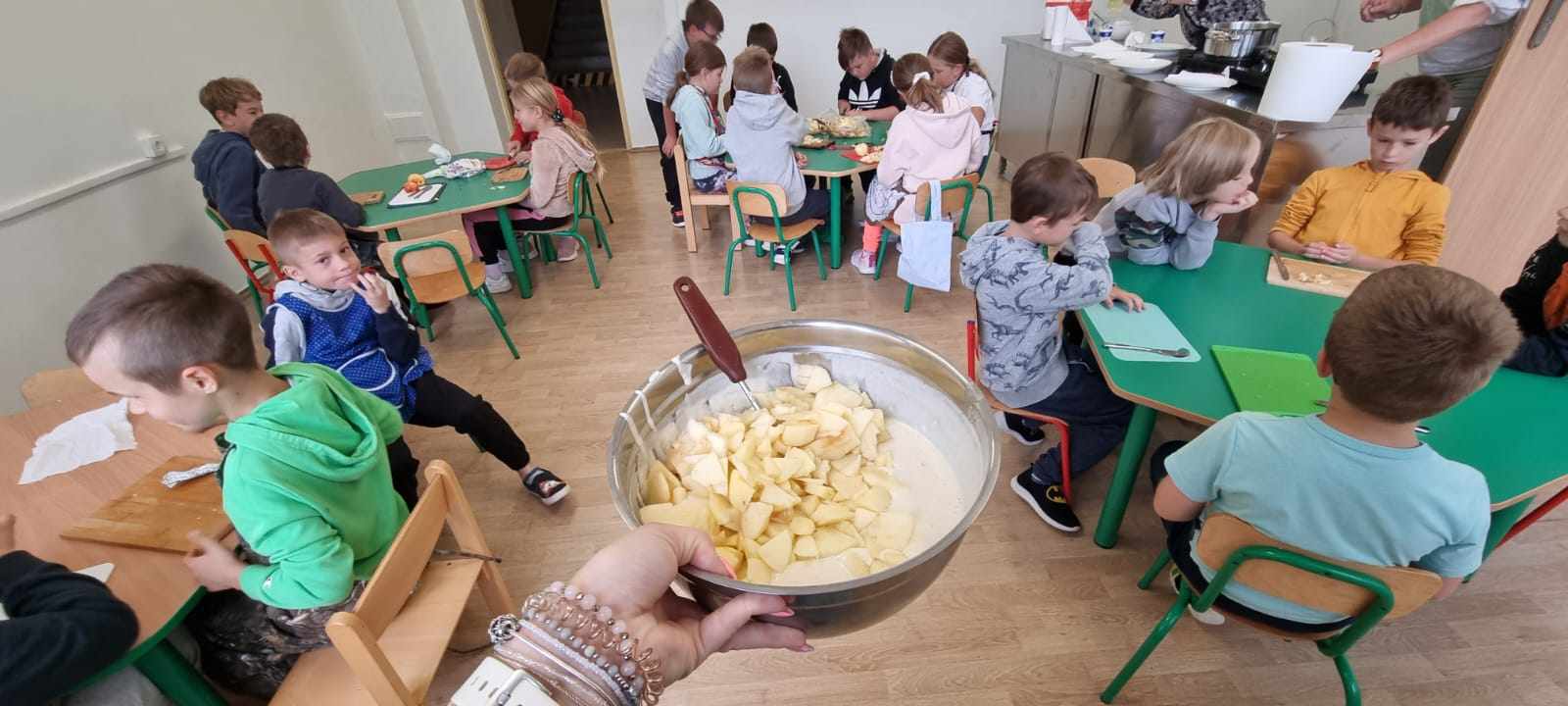 Uczniowie klas I- III Szkoły Filialnej w Małem Cichem wzięli udział w warsztatach kulinarnych. W trakcie zajęć wykazali się umiejętnością obierania oraz krojenia jabłek. Mogli także bezpośrednio obserwować etapy powstawania dania od wyszukania przepisu, po smażenie oraz degustację.