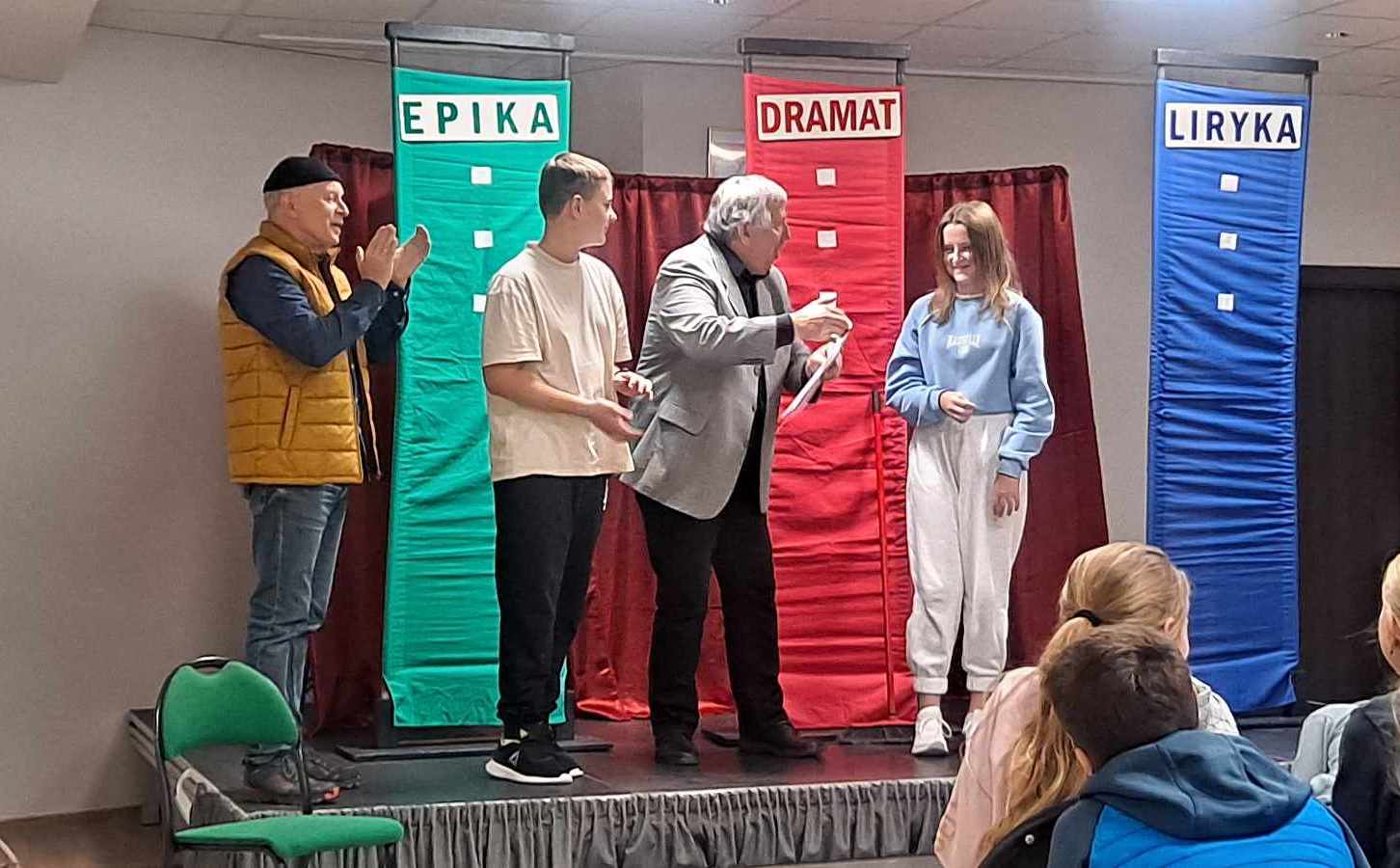 9 października 2023 roku w naszej szkole gościli panowie z agencji Artystycznej Pro- Art-Krak ze spektaklem pt. „Rodzaje i gatunki literacki- epika, liryka, dramat”. Uczniowie naszej szkoły mogli go nie tylko obejrzeć, ale także wziąć w nim czynny udział, wykazując się dużą otwartością na nowe doświadczenia sceniczne. Występ z panem Wojciechem Habelą oraz Jackiem Lecznarem był dla niektórych niecodziennym wydarzeniem i na pewno pozwolił na łatwiejsze przyswojenie wiedzy z prezentowanego zakresu.