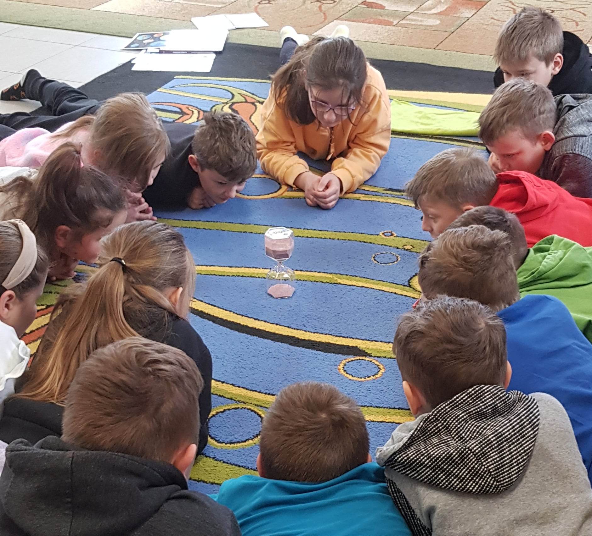 Zajęcia uważności „Kosmos i Kajo” to innowacja pedagogiczna, którą od kilku tygodni pani Beata Budz realizuje w klasie III a. Innowacja ta jest odpowiedzią na aktualne potrzeby uczniów. Współczesne dzieci są często przebodźcowane, zestresowane, rozkojarzone, mają trudności ze skupieniem uwagi, łatwo się dekoncentrują, w procesie nauczania nie uzyskują rezultatów na miarę swoich możliwości. Aby proces uczenia się przebiegał u uczniów prawidłowo, potrzebna jest uważność, czyli świadome skupienie się na wykonywanej czynności, osadzenie siebie w rzeczywistości „tu i teraz”.