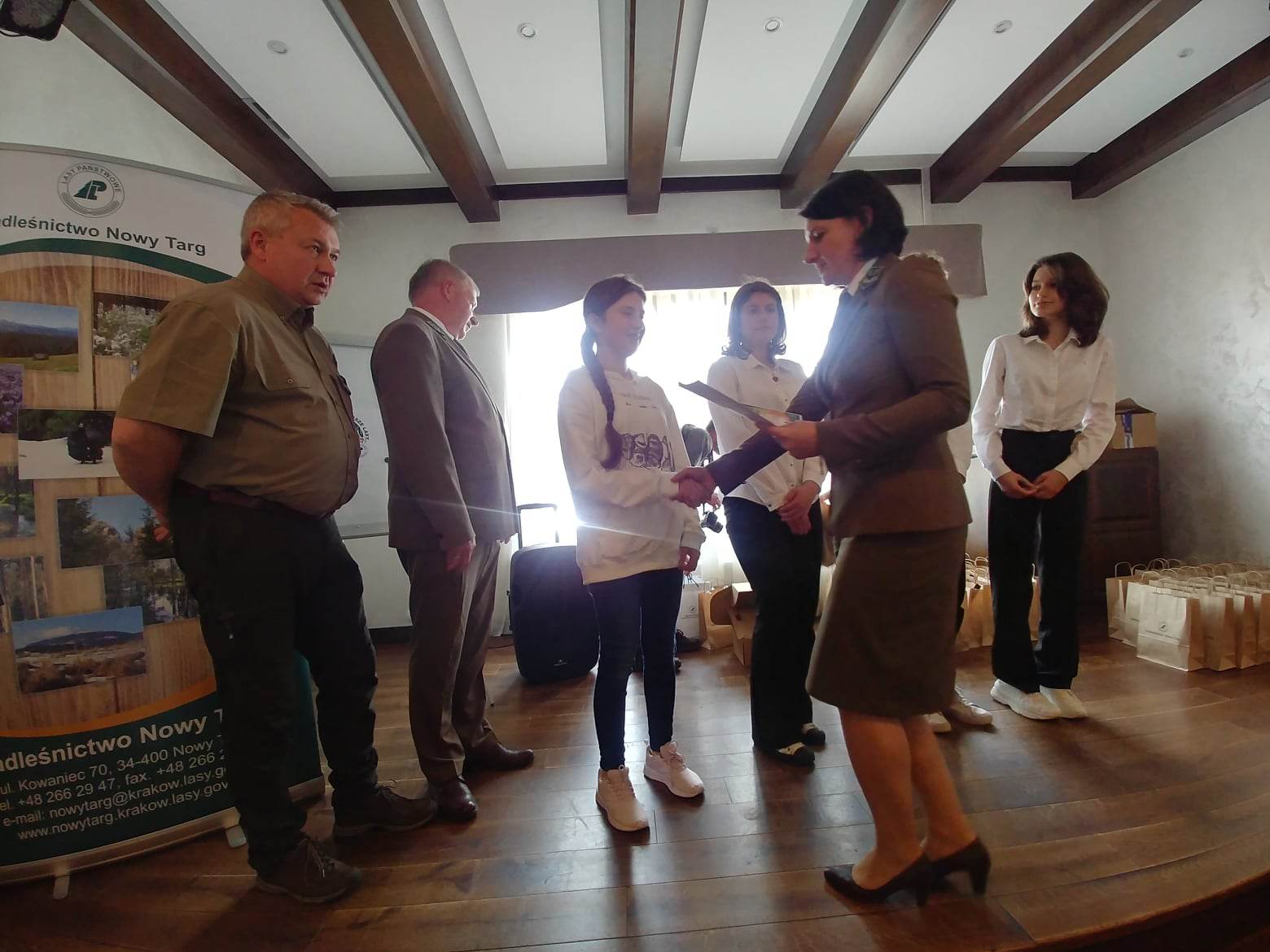 Agata Dorula z kl. VIII finalistką konkursu "Poznajemy nasze lasy i ojczystą przyrodę" organizowanego przez Nadleśnictwo Nowy Targ. Agata przeszła przez 2 etapy i dotarła do finału, który odbył się w Rancho Lot w Nowym Targu. Wielkie gratulacje!!!