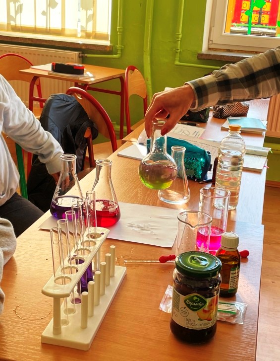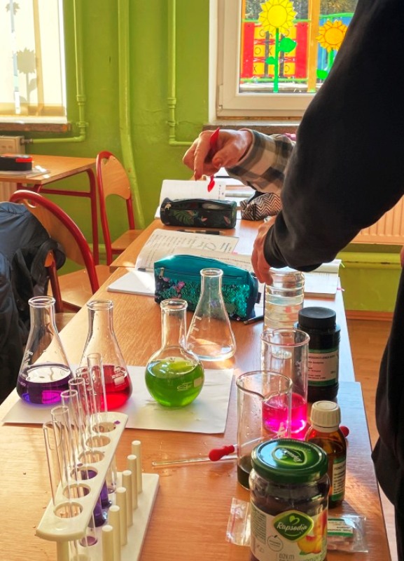 Wywar z czerwonej kapusty to wskaźnik, który zmienia zabarwienie w zależności od odczynu roztworu. Wywar wykonaliśmy samodzielnie.