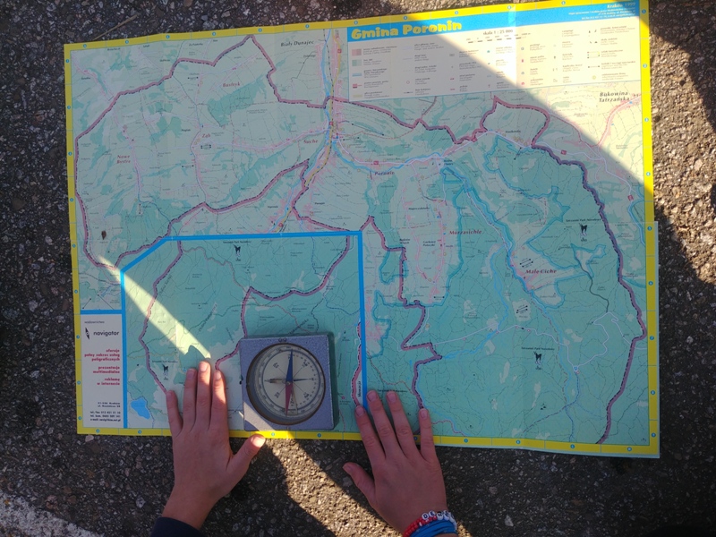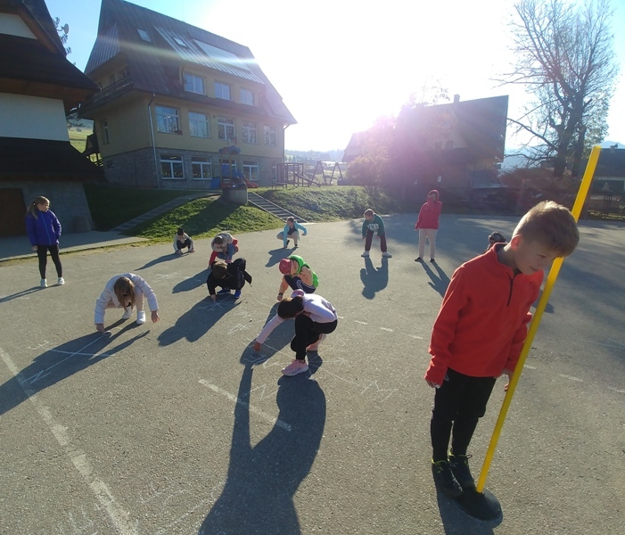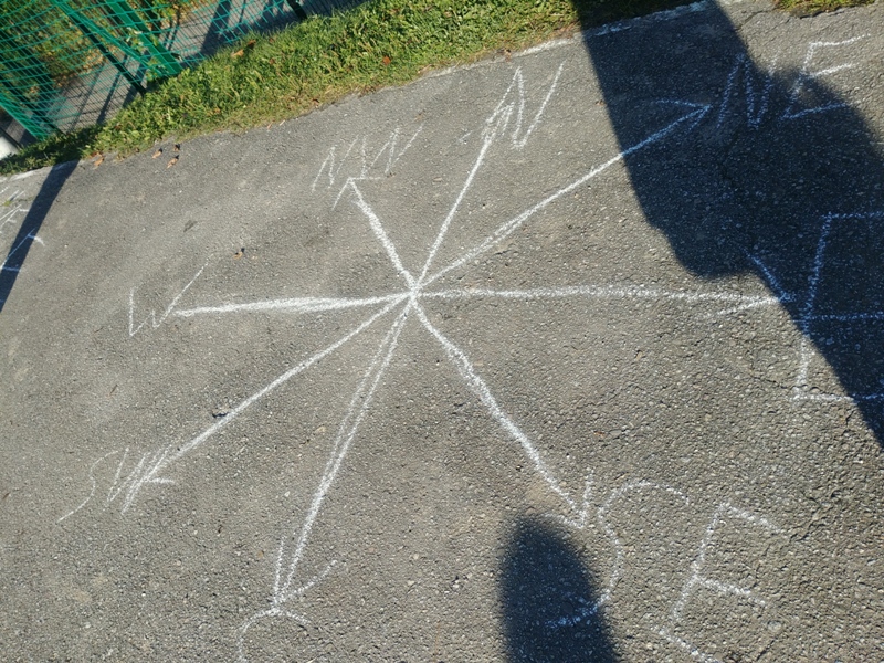Uczniowie klasy 4 korzystając ze słonecznej pogody wzięli udział w ciekawej lekcji geografii w terenie. Celem zajęć było utrwalenie wiadomości dotyczących sposobów wyznaczania kierunków geograficznych oraz orientowania mapy w terenie. Podopieczni po dotarciu na boisko szkolne otrzymali kompasy i mapy. Z ich pomocą wyznaczali kierunki główne i pośrednie oraz rysowali różę kierunków na boisku. Następnie nauczyciel przytoczył instrukcję wyznaczania kierunku północnego za pomocą gnomonu. Gnomon to jeden z najstarszych i najprostszych przyrządów astronomicznych. Najczęściej jest to pręt lub kij pionowo wbity w ziemię. My użyliśmy tyczki gimnastycznej, pożyczonej od nauczycieli wychowania fizycznegoJ Dzięki temu uczniowie poznali sposób obserwacji pozornej wędrówki Słońca w ciągu doby, a także niezbędne do tego warunki. Młodzi przyrodnicy świetnie sobie poradzili pod okiem nauczycielki Ewy Dębickiej.