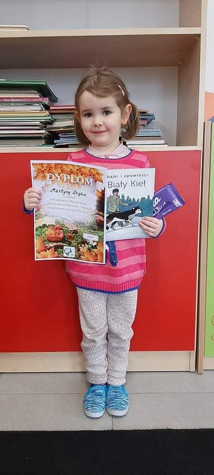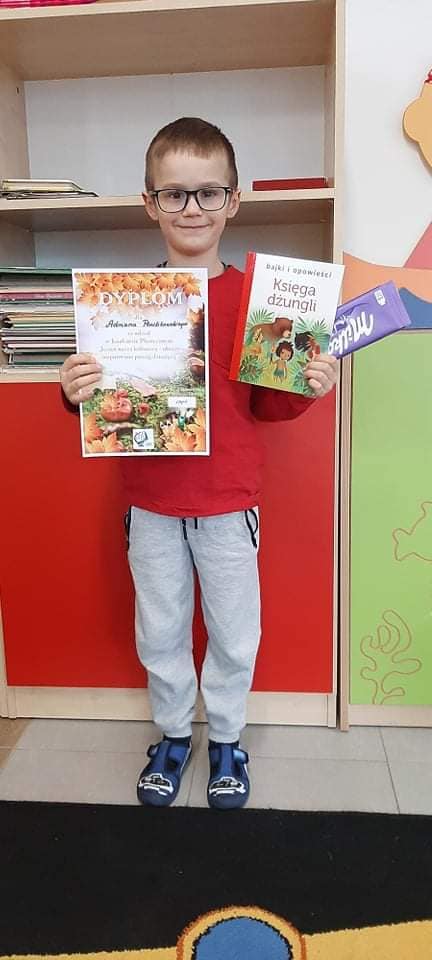 Martynka Żeglin i Adrian Pawlikowski z oddziału przedszkolnego wzięli udział w konkursie plastycznym pt. "Jesień nasza kolorowa- obrazy inspirowane poezją dziecięcą" organizowanym przez Gminną Bibliotekę Publiczną w Poroninie. Dzieci otrzymały pamiątkowe dyplomy oraz upominki.