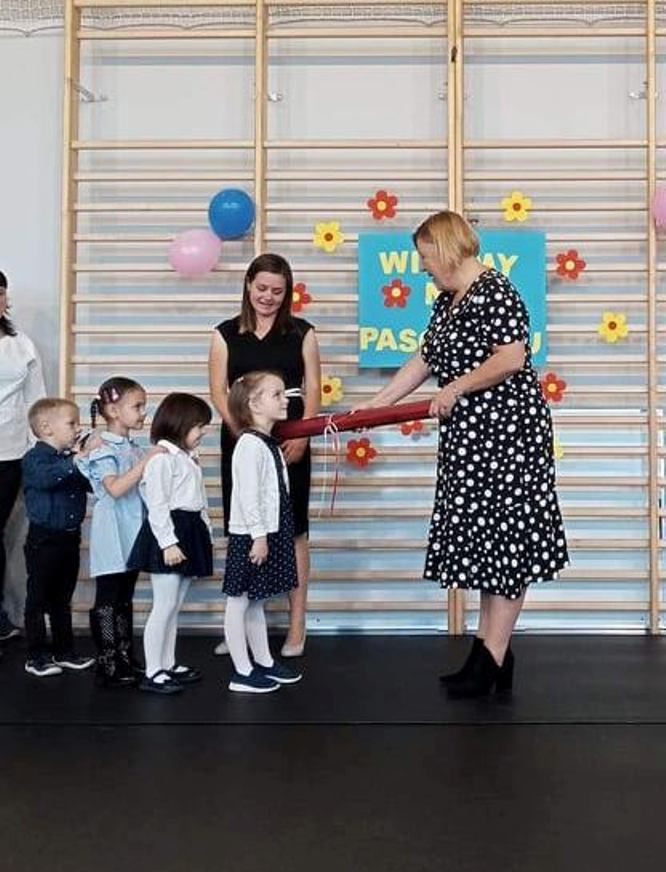 Po uroczystości pani dyrektor Monika Tomaszewska dokonała pasowania na przedszkolaka. Dzieci na pamiątkę otrzymały dyplomy i drobne upominki.