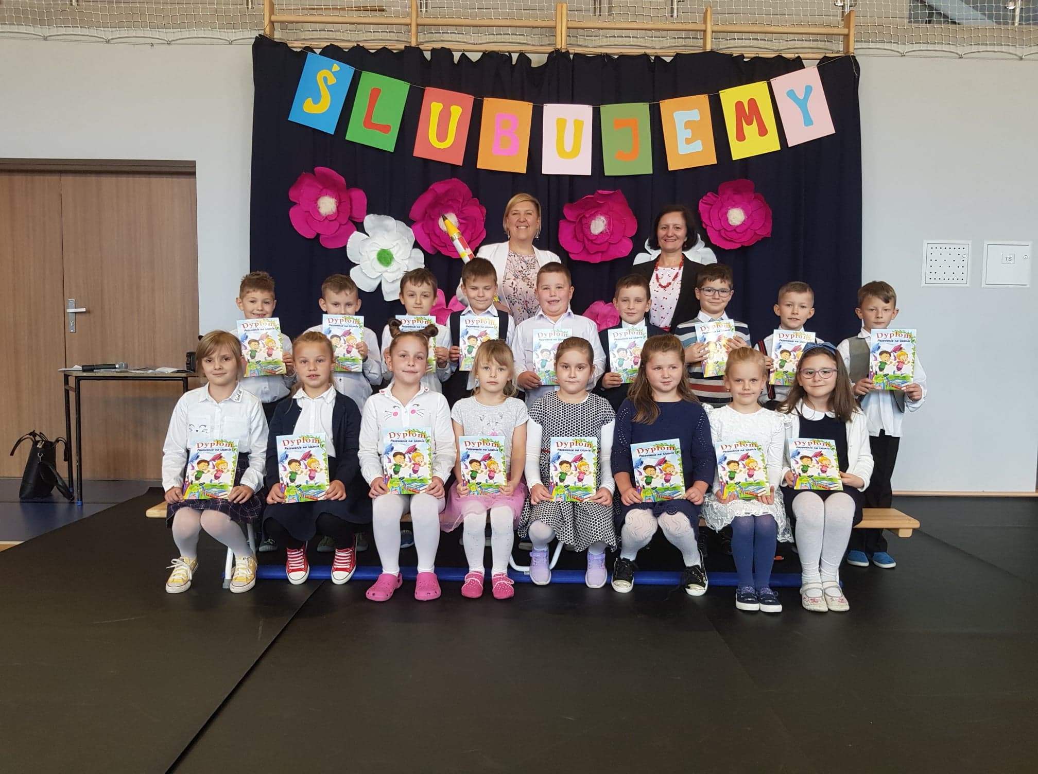 W piątek, 30 października 2020 r., na sali gimnastycznej odbyło się uroczyste pasowanie pierwszaków na uczniów. W tym roku, ze względu na rygorystyczne obostrzenia przeciwepidemiczne, w uroczystości wzięły udział tylko klasa 1 pod opieką pani Beaty Budz oraz klasa 2 z panią Dalidą Biel. Honorowym gościem była pani Dyrektor Monika Tomaszewska.