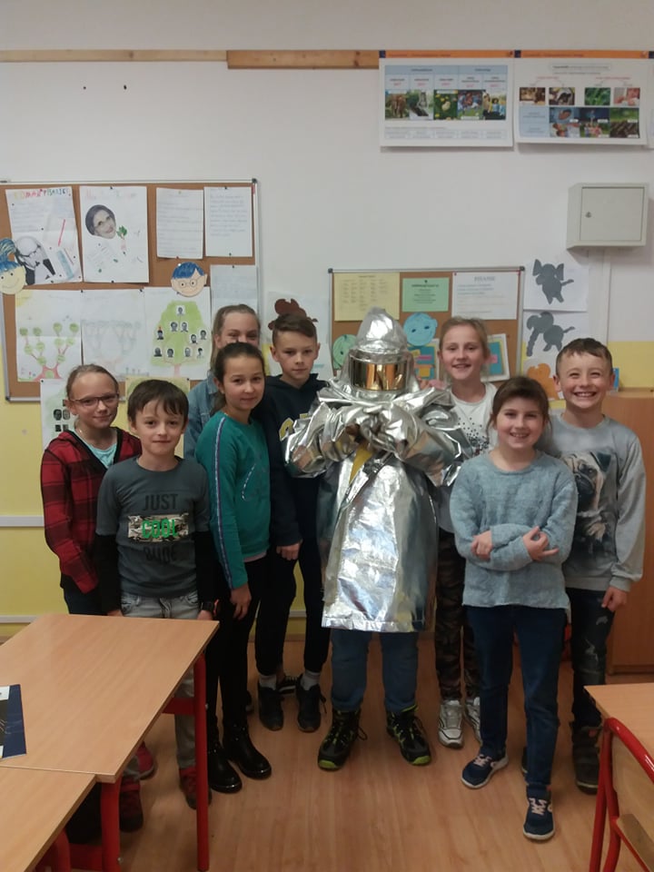 Dzisiaj odbyła się wyjątkowa lekcja techniki w klasie 5. Na zajęciach gościliśmy tatę jednej z uczennic - dr inż. Józefa Dorulę, który przeprowadził bardzo ciekawe doświadczenia związane z metalurgią. Każdy uczeń mógł sprawdzić różnice w wyglądzie i ciężarze różnych metali i ich stopów. Obserwowaliśmy, jak powstaje i dymi chlorek sodu, próbowaliśmy piłować stal i żelazo, by sprawdzić, które z nich jest bardziej wytrzymałe na ścieranie. Mogliśmy też zobaczyć z bliska meteoryt! Atmosfera była gorąca, szczególnie, gdy p. Józef spalał metal. Na szczęście, zachowaliśmy stosowne bhp. Uczniowie z zainteresowaniem uczestniczyli w lekcji. W nagrodę mogli przymierzyć odzież używaną przez hutników. Było to prawdziwie "drogie doświadczenie", tym bardziej, że skafander pokryty jest cienką warstwą złota!