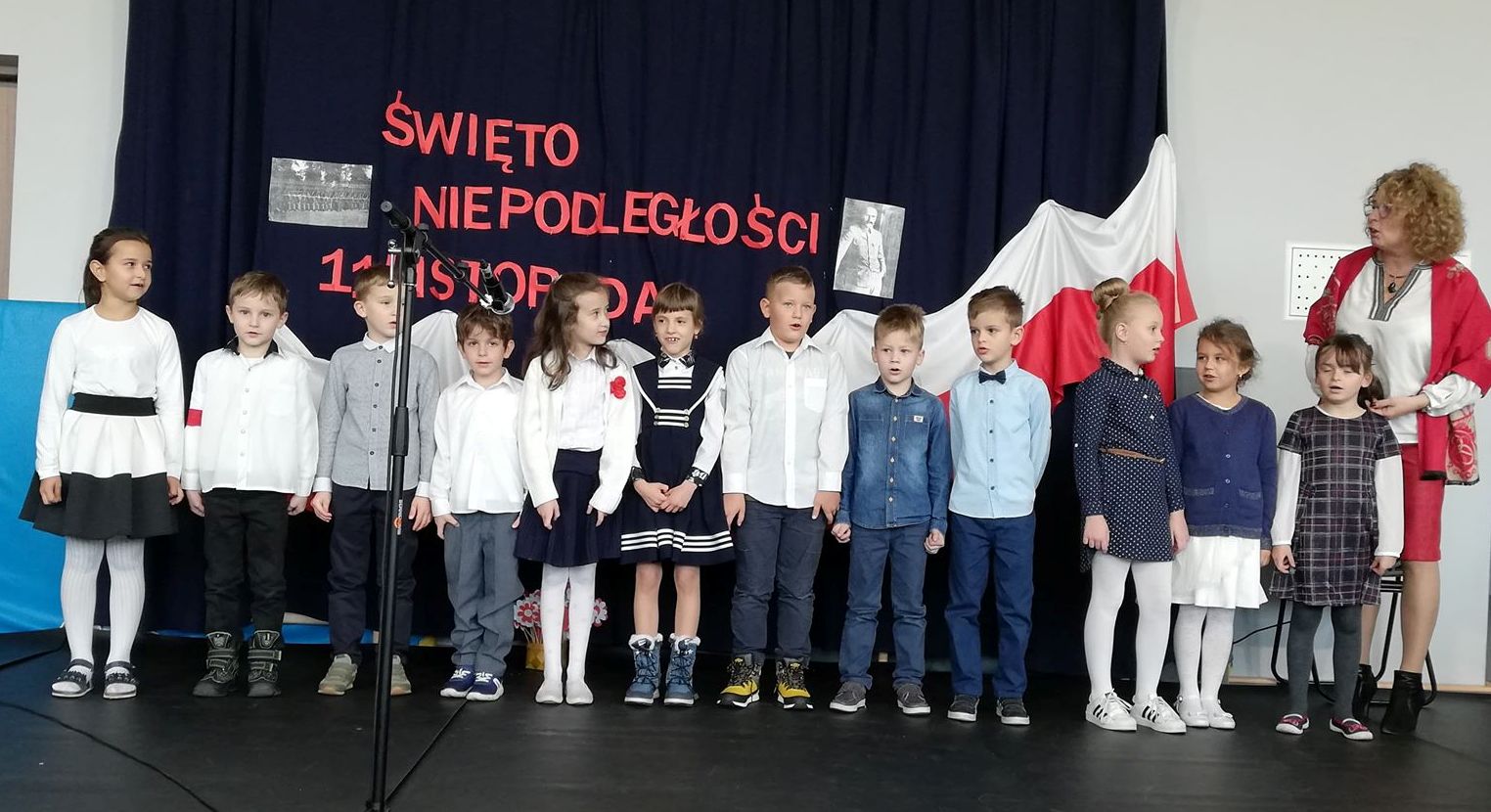 12 listopada, na sali gimnastycznej, odbyła się uroczysta akademia z okazji Święta Odzyskania Niepodległości. W trakcie uroczystości każda klasa zaprezentowała wybraną pieśń patriotyczną, wybrani uczniowie przedstawili wiersze znanych Polaków dotyczące naszej Ojczyzny. Miło było patrzeć na klasę drugą, która wystąpiła w strojach nawiązujących do czasów II wojny światowej. Gratulujemy pomysłowości w wyrażaniu patriotyzmu.