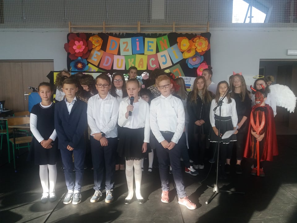 Dzień Edukacji Narodowej spędziliśmy razem, jak w rodzinnym gronie: Dyrekcja, Pracownicy szkoły, Szanowni Goście w osobach Pana Sołtysa Adama Pawlikowskiego oraz Emerytowanych Nauczycieli: Janiny Dziadoń, Janiny Łukaszczyk - Gawor, Anny i Adama Gąsieniców. W naszym gronie nie zabrakło także Uczniów oraz Rodziców. Dziękujemy Wam za ten wspólnie spędzony czas! Szczególnie dziękujemy Paniom Ewie Dębickiej i Hannie Zawiałów wraz z uczniami klas 5 i 6 za przygotowanie wesołego przedstawienia pt. "Skąd wziął się nauczyciel na świecie?" Dziękujemy też uczniom należącym do Szkolnego Samorządu Uczniowskiego za własnoręczne wykonanie kwiatów dla pracowników szkoły!