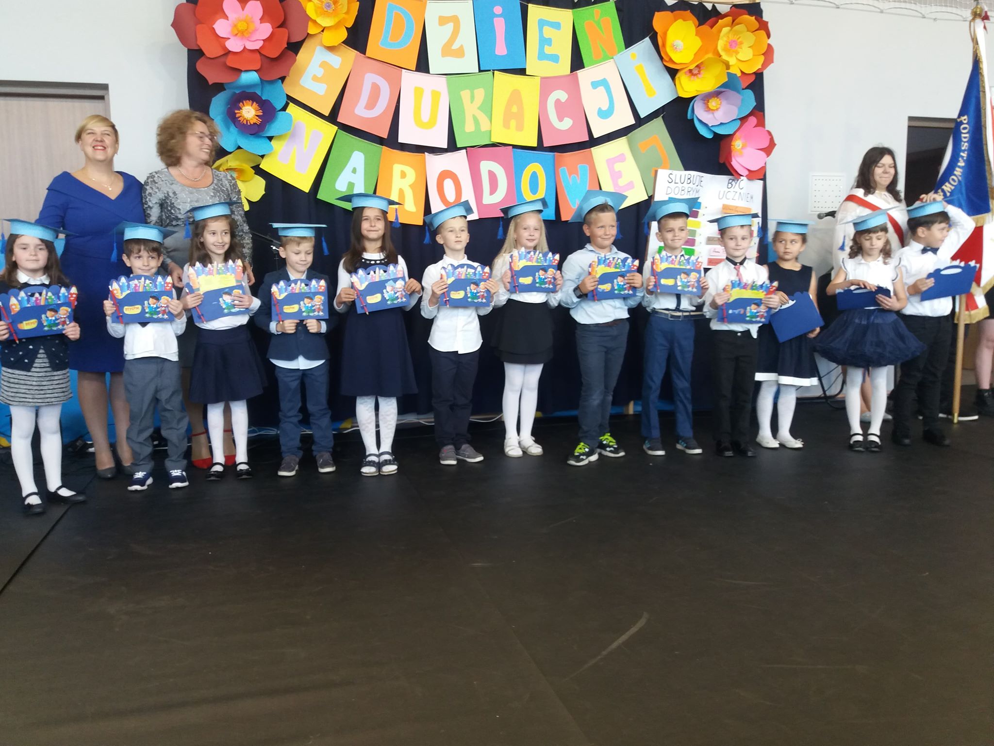 14 października, w Dzień Edukacji Narodowej na sali gimnastycznej odbyła się uroczystość Ślubowania Uczniów klasy 1. Z tej okazji uczniowie klasy 2 z p. Gabrielą Warzechą - Fajto przedstawili dla swoich młodszych kolegów program artystyczny. Na zajęciach edukacji technicznej Pani Justyna Mularczyk - Żądło z uczniami klasy 2 przygotowała upominki - przyborniki oraz piękny plakat dla pierwszaków, który został wręczony wychowawczyni - p. Dalidzie Biel. Uczniowie klasy 3 również z p. Justyną wykonali dla kolegów pamiętniki. Po ślubowaniu p. Dyrektor Monika Tomaszewska dokonała uroczystego mianowania na uczniów klasy 1. GRATULUJEMY PIERWSZOKLASISTOM!