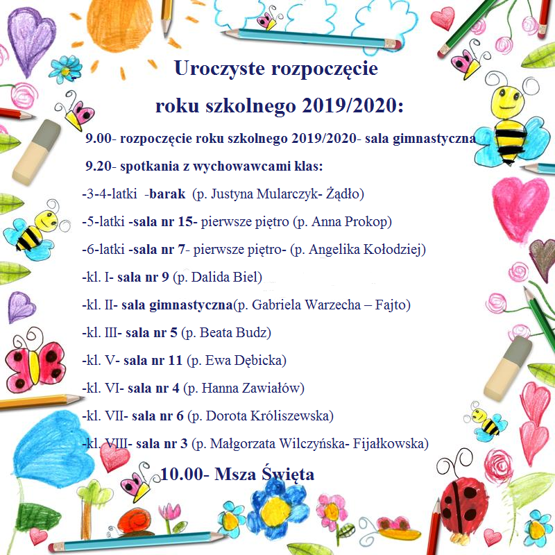 Dyrekcja Szkoły Podstawowej im. Ratowników Tatrzańskich w Murzasichlu informuje, iż od poniedziałku 26.08.2019r. do piątku 30.08.2019r. zajęcia w oddziałach przedszkolnych odbywać się będą codziennie od 8.00 do 13.00 w sali 5-latków na pierwszym piętrze.