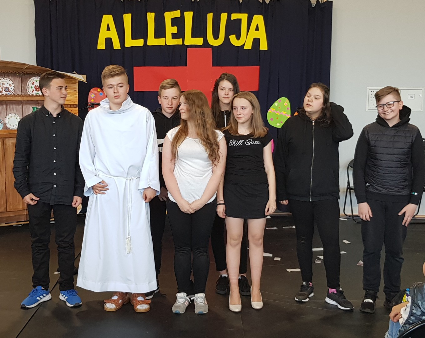 6 kwietnia w naszej szkole odbyło się Przedstawienie Wielkanocne, które zostało wykonane w dwóch, odrębnych częściach: "Kurnikowo" i "Pantomima - Jezus Żyje". Przygotowali je uczniowie należący do koła plastyczno - teatralnego, pod kierunkiem p. Doroty i p. Teresy. Dziękujemy młodzieży za pracę nad sympatycznym występem!
