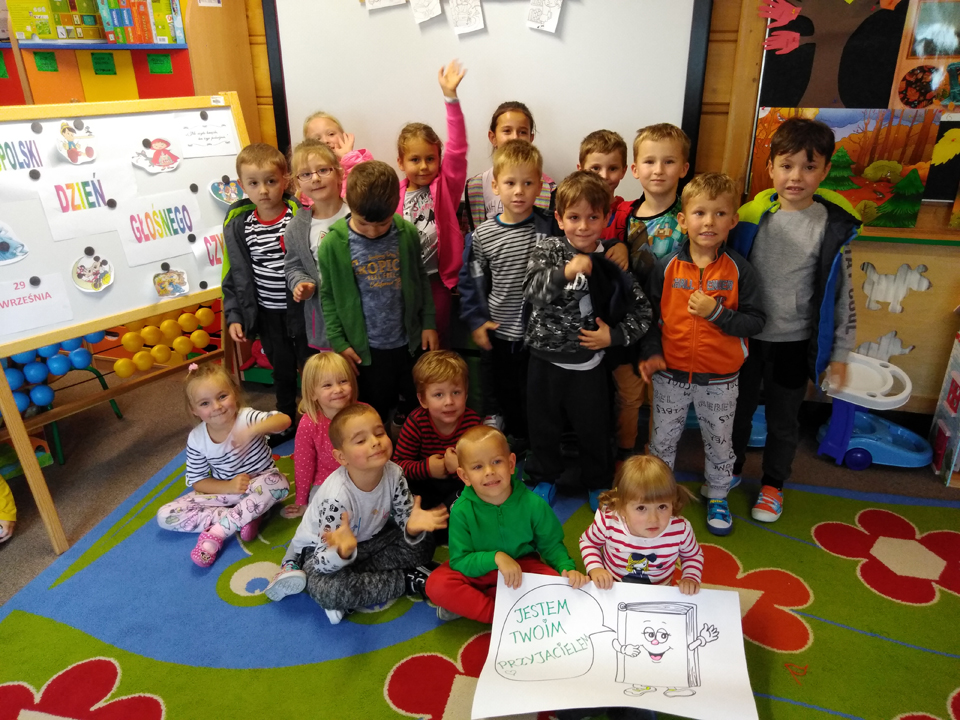 W piątek w naszym przedszkolu odbył się Dzień Głośnego Czytania. Przedszkolaki odwiedziły w tym dniu szkolną bibliotekę, wysłuchały bajki o Kopciuszku czytanej przez naszego gościa i odtworzyły ją w formie teatrzyku. Było też sporo zabawy, quizów i zagadek, a na koniec dzieci wykonały piękne prace. Dziękujemy wszystkim, którzy zaangażowali się w organizację tego dnia i mile spędzony czas.